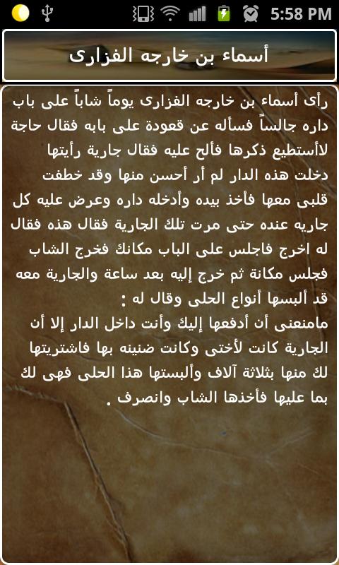 يحتوى التطبيق على 50 قصة من قصص العرب الشيقة في الجود والكرم