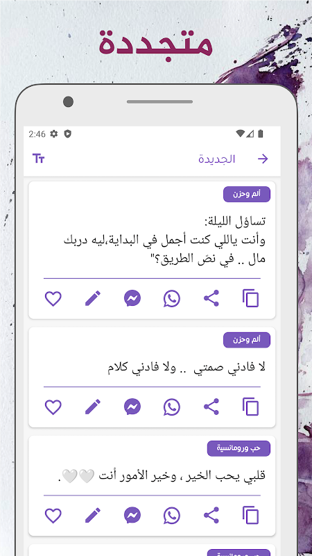 Il propose les meilleurs et les plus récents mots, publications et publications pour Facebook, Whatsapp et tous les sites de réseaux sociaux pour échanger de l'amour entre amis, proches et frères en parcourant les valeurs que vous voulez, en copiant le statut et en le collant où vous le souhaitez, à partir de l'application uniquement