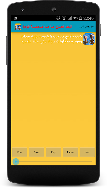 تطبيق كيف تصبح صاحب شخصية قوية يقدم لكم نصائح بالصوت كي تتعلموا كيفية تكوين شخصية جذابة ومؤثرة بخطوات سهلة وفي مدة قصيرة.