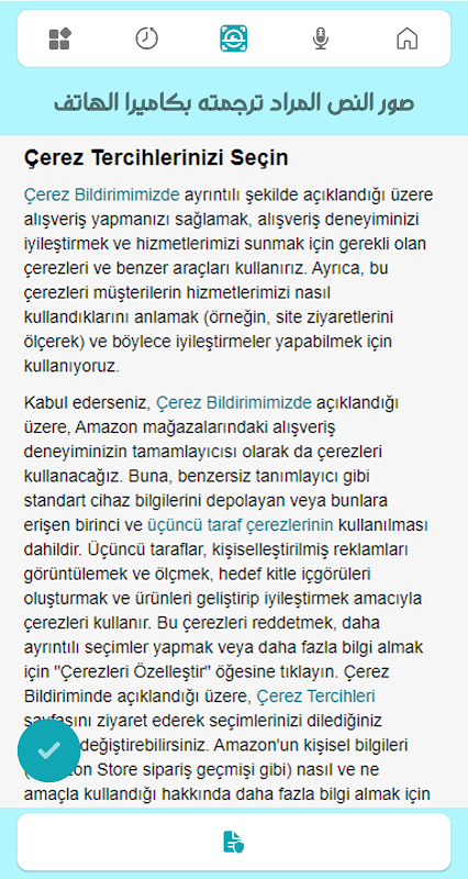 يمكنك بواسطة برنامج المترجم عربي تركي بالكاميرا ترجمت النصوص والصور الملتقطة بالكاميرا من وإلى العربية والتركية بسهولة من خلال هاتفك او اللوحي الخاص بك.