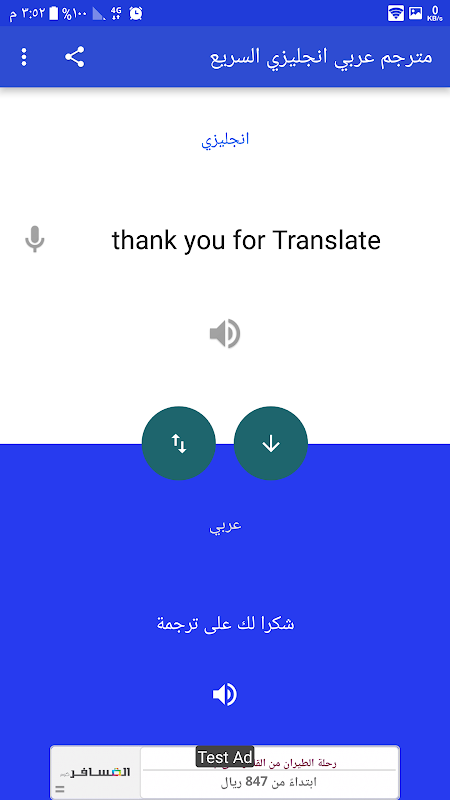 Designed to learn English or travel to communicate with English just press the microphone and then spoke in Arabic and leave the rest