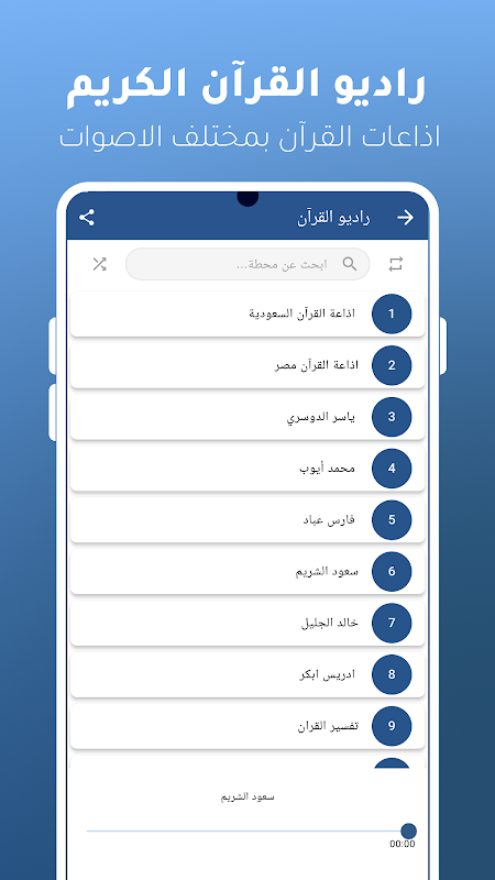 L'application « Coran complet par Mahmoud Khalil Al-Hussary sans Internet » est un excellent choix pour ceux qui recherchent une expérience unique d'écoute du Saint Coran avec la voix de Mahmoud Khalil Al-Hussary, à tout moment, où qu'ils soient et sans connexion Internet. L'application offre un accès facile et rapide à diverses sourates, telles que les sourates Al-Baqarah, Al-Kahf et Al-Mulk, permettant ainsi aux utilisateurs de les réciter facilement et confortablement. De plus, l'application permet d'écouter le Coran à la radio, récité par Mahmoud Khalil Al-Hossary, et d'apprécier la beauté de sa récitation. Pour ceux qui recherchent une roqya authentique, l'application offre également la possibilité d'écouter la roqya avec la même facilité et le même confort. De plus, l'application offre un contrôle pratique du volume et la possibilité d'arrêter la musique après une durée déterminée, rendant l'écoute du Coran récité par Mahmoud Khalil Al-Hosary plus confortable et organisée. L'application « Mahmoud Khalil Al-Hosary hors ligne » est la solution idéale pour ceux qui souhaitent écouter le Coran récité par Mahmoud Khalil Al-Hosary à tout moment, sans avoir à chercher une connexion internet.