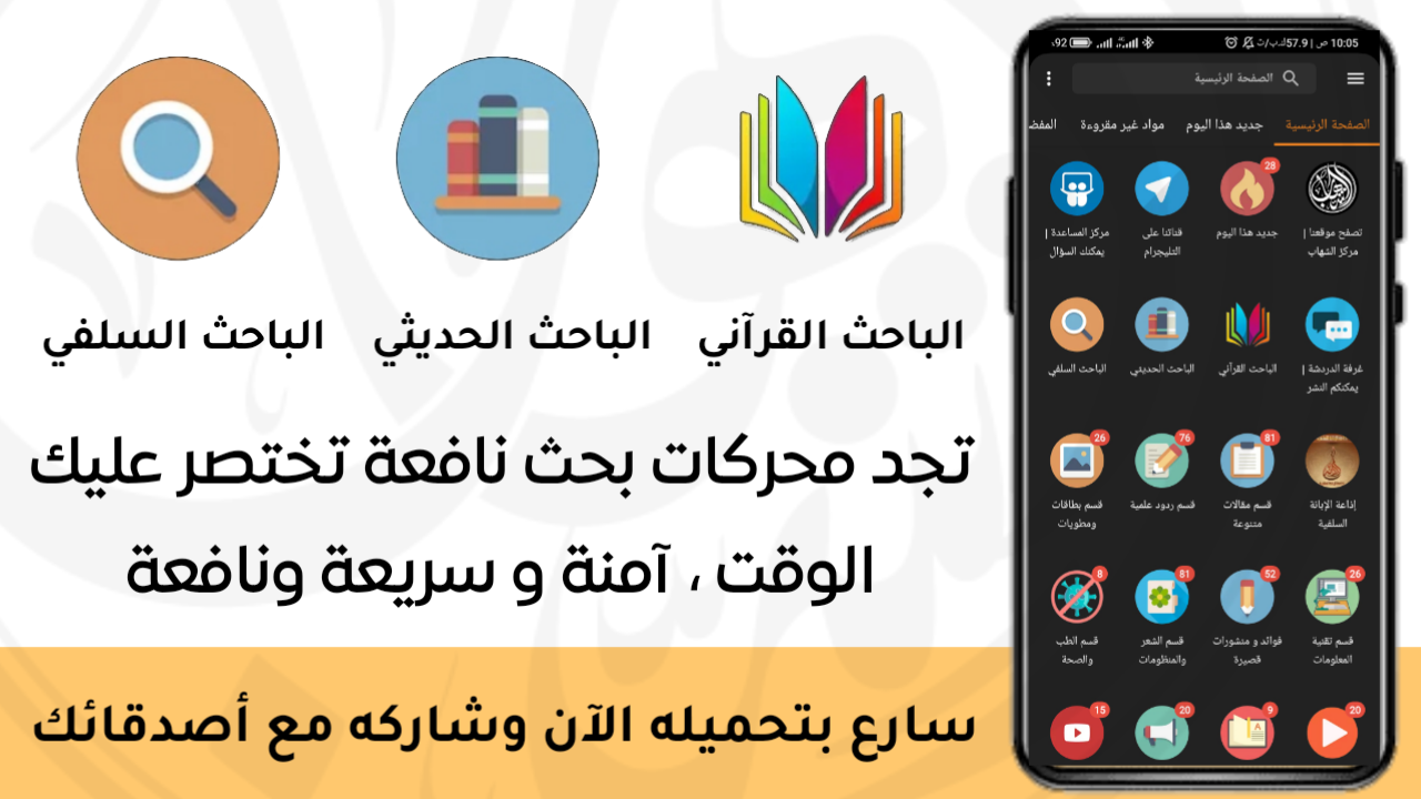 Au Centre Al-Shehab Da'wa, nous complétons ce que nous avons commencé sur notre chaîne Telegram en transmettant des leçons scientifiques et des conférences originales dans l'approche salafiste et en mettant en relation les gens avec les grands savants à propos desquels le Prophète, que les prières et la paix de Dieu soient sur lui, a dit : « La bénédiction est avec vos grands (Authentifié par Al-Albani dans Al-Sahih : 1778) tels que : Cheikh Bin Baz, Cheikh Al-Albani, Cheikh Bin Outhaymine, Cheikh Muhammad Aman Al-Jami, Cheikh Ahmed Al-Najmi et Cheikh Muqbil - que Dieu Tout-Puissant leur fasse miséricorde - et nos savants vivants tels que : Cheikh Saleh Al-Fawzan, Cheikh Rabi' Al-Madkhali, Cheikh Ubaid Al-Jabri et bien d'autres - que Dieu Tout-Puissant les protège et nous en profite - et nous en ajouterons davantage dans cette application :