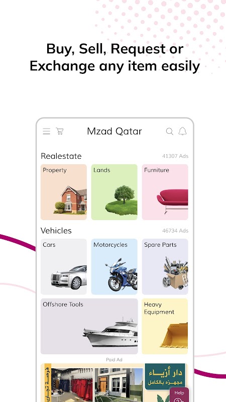 En téléchargeant l'application MzadQatar, vous obtenez la plus grande plate-forme pour acheter et vendre au Qatar, commencez immédiatement à vendre vos produits et ce dont vous n'avez plus besoin, ou recherchez ce dont vous avez besoin pour acheter facilement dans les différentes catégories de MzadQatar.
