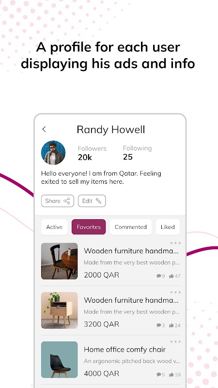 4- Contrôlez et modifiez facilement votre profil personnel, vos favoris et vos annonces.