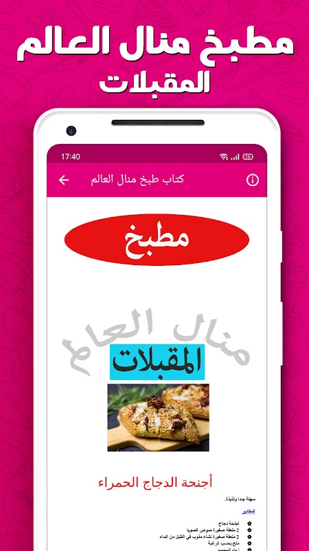 L'application contient des programmes de cuisine et des recettes pour manger sans filet, comme des recettes pour cuisiner du poulet et des plats du Ramadan sans filet, en plus du mode de réalisation (pizza, crêpe, génoise, tous les desserts sans filet, moules, macaronis). avec béchamel, gâteau au chocolat, cupcakes, glaces ; Déjeuner ; Cuisine égyptienne, pâte à sucre, lasagne)