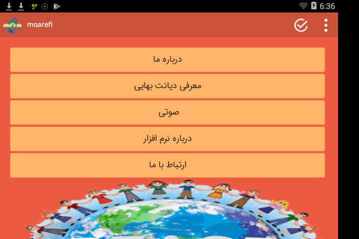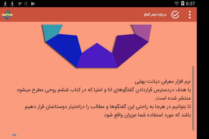 ائلیکیشن معرفی دیانت بهایی بر اساس مطالب کتاب 6 روحی گفتگوهای انا و ایملیا تهیه شده است .