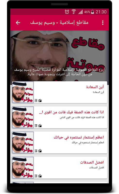 تطبيق "مقاطع إسلامية - وسيم يوسف" يجمع أروع المقاطع الصوتية الإسلامية المؤثرة لفضيلة الشيخ وسيم يوسف ، من دون الحاجة إلى انترنت وبجودة صوت عالية.