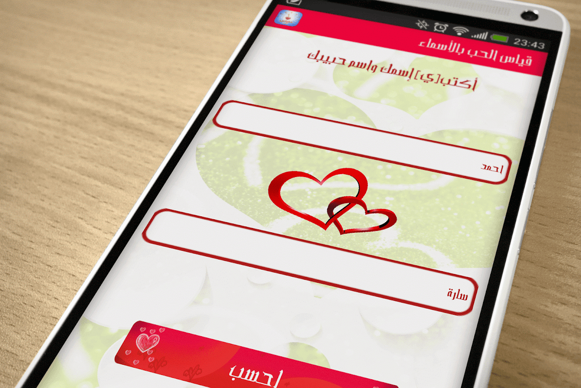 - قياس نسبة الحب بينك و بين حبيبك عن طريق الإسم. أكتب إسمك و اسم حبيبك و إعرف نسبة الحب بينك و بين حبيبك.