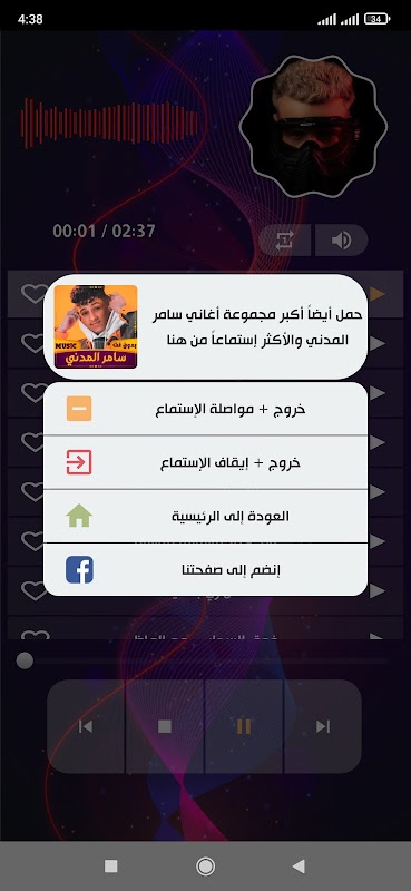 • يمكنك إستماع الأغاني في الخلفية وإستعمال تطبيقاتك الأخرى