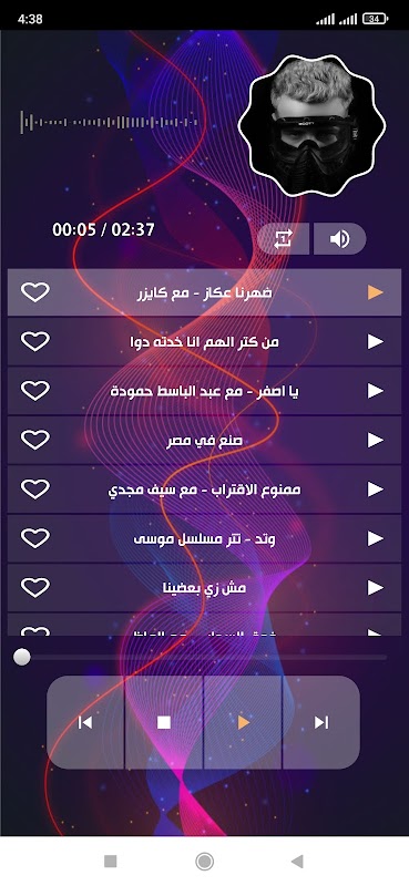 • يمكنك الإنتقال تلقائياً بين الأغاني