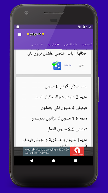 المئات من احلى النهفات المختاره اضحك عليها وشاركها مع اصحابك على كل برامج التواصل الإجتماعي وحتى يمكنك نسخ نص النكته ولصقه في اي برنامج تريد...