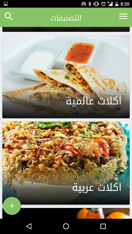 بعض انواع الاطعمة والاطباق في التطبيق :