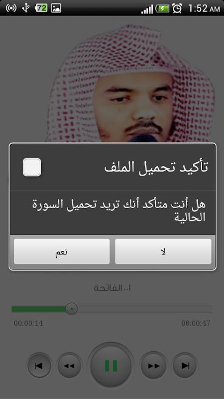 إمكانية تحميل اي سورة على الجهاز والاستماع لها بدون الاتصال بالانترنت.