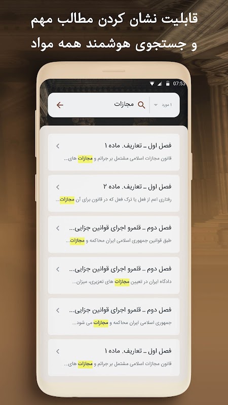 برنامه کتاب قوانین کیفری و مجازات اسلامی برای قبولی در آزمون وکالت برای شما کاربران عزیز ارائه شده است تا به مرجع کامل قانون جزا و مجازات های کیفری و حقوقی دسترسی داشته باشید.