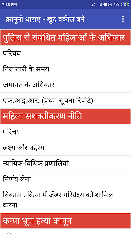 Cette application est utile pour les étudiants qui poursuivent des études de droit, se forment dans une académie de police et également pour les avocats sur leur lieu de travail. il s'agit de l'application Kanunii Dhara (Code pénal indien 1860).