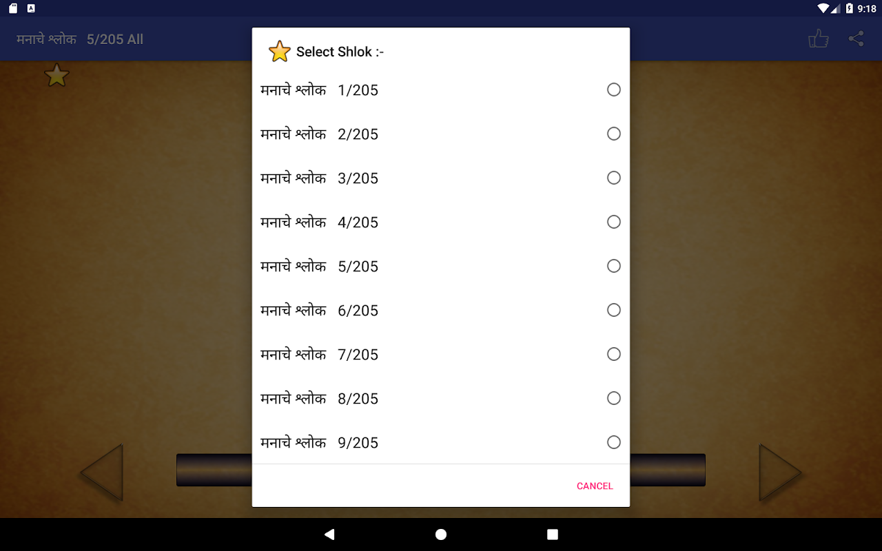 So Application contains 205 Abhangas called "ManacheShlok" also know as Shree Manache Shlok (मनाचे श्लोक)