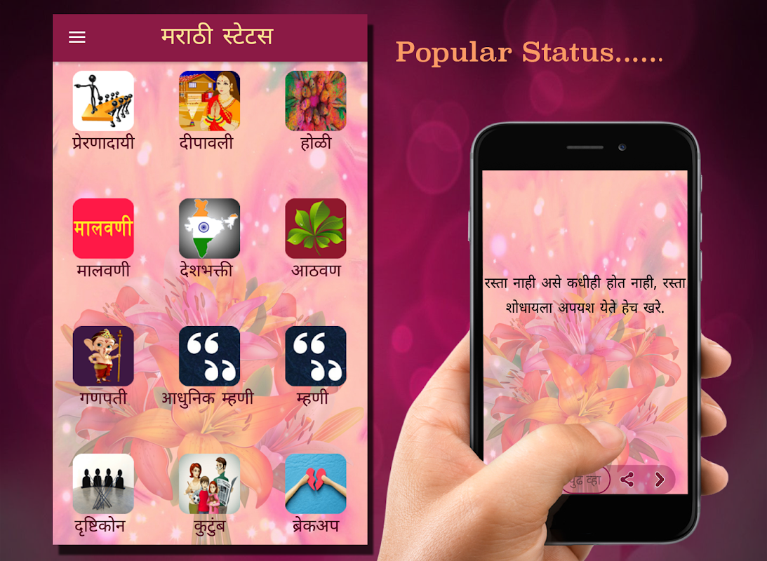 Statut Marathi (मराठी स्टेटस) Application est grande collection de statut ou de message en Marathi.