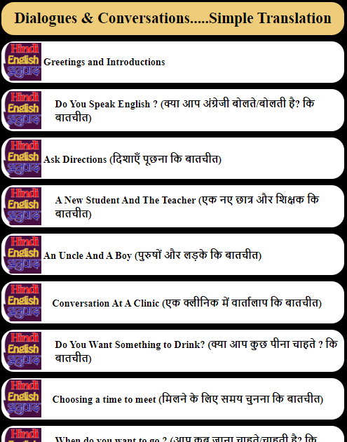 Vous pouvez obtenir la traduction de chaque phrase et mot anglais en hindi! Dans cette application