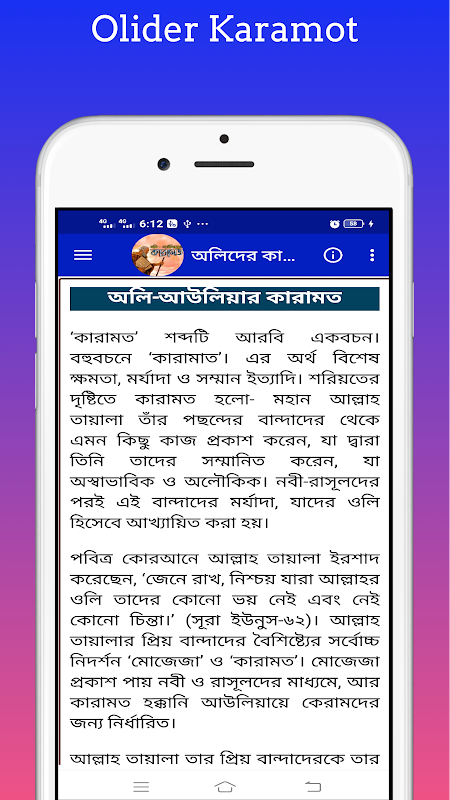 Le mot Oli signifie ami et le pluriel d'Oli est Aulia, ce sont les amis d'Allah Ta'ala. Il y a beaucoup de miracles dans la vie de ces gens formidables et ces miracles sont vrais. Pour cela, cette fois, nous avons organisé une application appelée Ali's Miracle-Miracle. Avec l'aide de cette application, vous pouvez facilement connaître les événements d'Allah Ali et Karamatul Auliya.