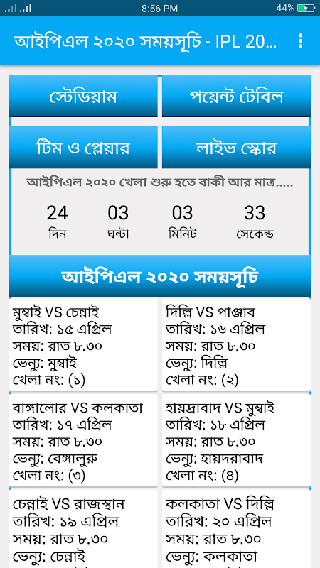 আইপিএল ২০২০ সময়সূচি - IPL 2020 Schedule 1.2
