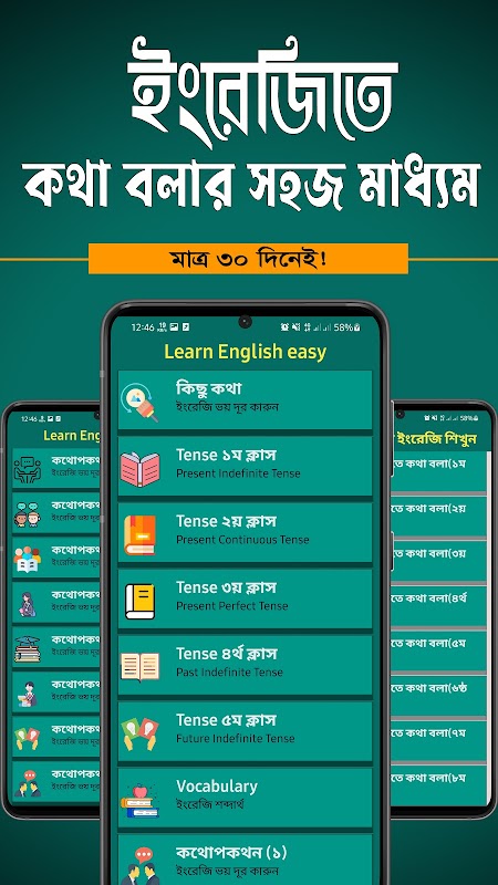 সহজে ইংরেজি শেখা বা সহজে ইংরেজিতে কথা বলা এখন প ্রত্যেকের জন্যই প্রয়োজন। ইংরেজিতে কথোপকথন এর জন্য ইংরেজি গ্রামার শেখাট া খুব বেশি প্রয়োজন নেই। শিক্ষা করার জন্য আমাদের এই অ্যাপট নিয়ে এলাম । এই অ্যাপে ৩০ টি ক্লাস আছে। ক্লাসগুলো গুরুত্ত্বসহকারে দেখবেন এবং ভালোভা বে বুঝার চেষ্টা করবেন। প্রতিটি ক্লাস ভালোভাবে অনুশীলন করুন এবং ৩০ দি ন পর নিজেকে ইংরেজিতে দক্ষ প্রমাণ করুন।