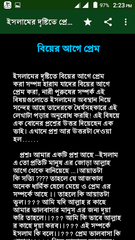 ইসলামের দৃষ্টিতে বিয়ের আগে প্রেম করা সম্পন্ন হারাম যাদের বিয়ের আগে প্রেম করা, নারী পুরুষের সম্পর্ক এই বিষয়গুলোতে ইসলামের অবস্থান নিয়ে সন্দেহ আছে তাদেরকে ধৈর্যসহকারে এই অ্যাপ টি পড়ার অনুরোধ করছি!