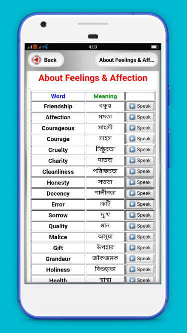 Donc, si vous recherchez la meilleure application “ইংরেজি শব্দের অর্থ - Livre de mots anglais vers bengali”; appuyez sur ce bouton de téléchargement et commencez à profiter du merveilleux processus d'apprentissage de la prononciation anglaise en bengali.
