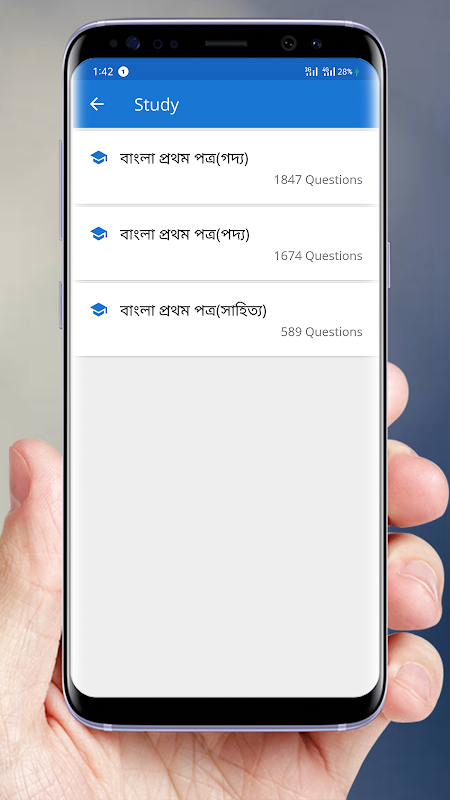 Pour ceux qui préparent HSC Bangla First Paper MCQ, voici notre Bangla First Paper MCQ Bank App 2022. Dans cette application, vous pouvez facilement vous vérifier car il existe un système de tests sur chaque sujet. Vous pouvez lire le QCM et vous entraîner avec. Ce qui vous permet d'être préparé à 100% pour n'importe quel examen. L'application ajoutera également plus de QCM à chaque mise à jour, ce qui vous aidera à élever votre niveau de préparation au sommet.