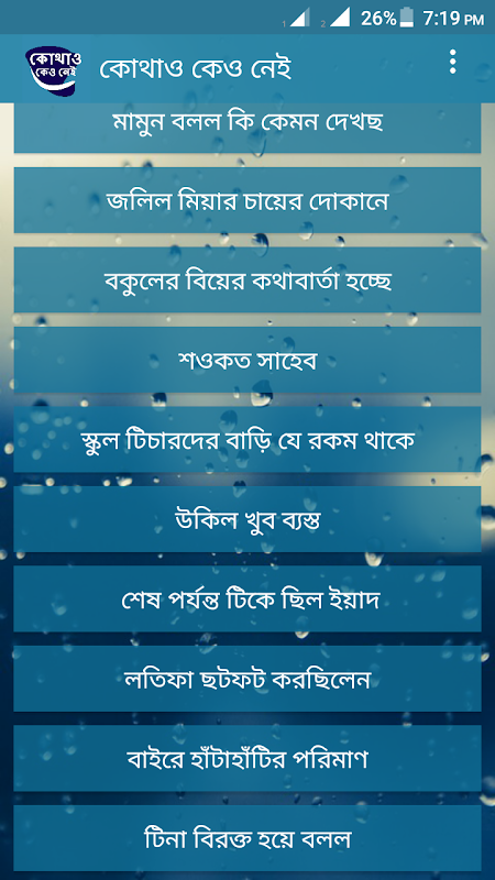এই অ্যাপ টিতে নিচের গল্প গুলি পাবেন। এবং পরবর্তী আপডেট এ অন্যান্য বই গুলি সংযুক্ত করা হবে।