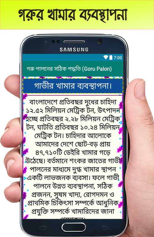 গরু পালনের দারুণ কিছু টিপস নিয়ে আপনাদের মাঝে নিয়ে এলাম সঠিক ভাবে গরু পালনের একটি অ্যাপ্লিকেশন। এই অ্যাপ্লিকেশনটির মাধ্যমে আপনারা গরু পালন সম্পর্কে অনেক ধরনের টিপস পাবেন। এই অ্যাপ্লিকেশনটি গরু পালন করতে অনেক সহযোগিতা করবে। গরু পালন করে অনেক ভাল ভাবে জীবিকা নির্বাহ করা যায়।
