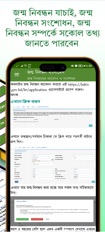 Cette application vous aidera à vérifier votre enregistrement de naissance et à corriger tous les types de problèmes tels que le mauvais nom, la mauvaise date de naissance, le mauvais nom de parent. Vous pouvez connaître les règles d'établissement et de correction de l'enregistrement des naissances au Bangladesh.