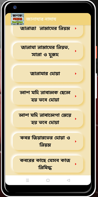 জানাযার নামাজ একটি গুরুত্বপূর্ণ বিষয়।একটা মানুষের অন্তিম বিদায় জানাযার মাধ্যমে সম্পন্ন করে থাকি। সেই জানাজার নামাজটি অবশ্যই আমাদের সঠিকভাবে আ দায় করা উচিৎ। আমাদের মধ্যে অনেকেই যারা জানাযার নামাজ সঠিক ন িয়ম জানিনা তাদের জন্য এই নামাজটি কঠিন মনে হয় । কিন্তু একজন মুসলিম হিসেবে আমাদের অবশ্যই জানা যার নামাজ শিখতে হবে। জানাযার নামাজের নিয়ম পুরুষ মহিলা এবং অপ্রাপ আমরা যাদের নাবালেগ/নাবালেগা বলি সবার ই নিয়ম গুলো একই শুধু দোয়ার ও দূরুদ কিছু পার্থ ক্য রয়েছে। এছাড়া কবরস্থ করা ব্যাক্তি জন্য কিভাবে দোয়া করবো সেই বিষয় গুলো এখানে জানতে পারবেন।দোয়া কবর জিয়ারত সম্পর্কে বিস্তারিত দেয়া আছে। এছাড়া কবর স্থানে কিকি কাজ ও দোয়া করা যাবেনা অর্থাৎ নিষিদ্ধ সেগুলো দেওয়া আছে। এই এ্যাপটি মাধ্যমে আপনি সহজে জানবেন কিভাবে জা নাযা নামাজ পড়তে হয় জানাযা নামাজের নিয়ত ও দো য়া।জানাজা ও দাফন কাফন দেওয়া অনেকেই জানে না আ পনি মুসলিম হিসেবে জানাযা নামাজ না জানে তাহলে আপ নি আজই দাফন কাফন যানাজা দোয়া শিখে নিন এখান থেক ে।