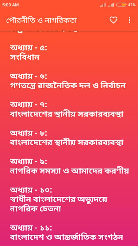 নবম ও দশম শ্রেণীর শিক্ষার্থীদের জন্য, অধ্যায় ভিত্তিক পৌরনীতি ও নাগরিকতা বই। অ্যাপের সাহায্যে বইটি পড়া যাবে এবং ভাল লাগলে ডাউনলোড করে সংরক্ষণ করাও যাবে।