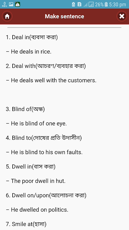 Spoken English is most important skill wherever you live, now in postmodern life all communication based on English. Now days it has become very easy to learn spoken English to Bangle. Not necessary to learn English grammar Bangla, spoken English within 30 days types book. Our app “১৫০০ ইংরেজি বাক্য যা ডেইলি ব্যবহার করা হয়” show you learn spoken English quickest and easiest way. This app contain most common 1500 English sentence which we use everyday life. Yes if you can learn this 1500 common sentence you will to able make conversation in English easily. You can also using this app as English to Bangla Dictionary, English to Bangla vocabulary guide, and English to Bangla translation guide. For learn English watching lot of English movies and TV series with practicing app content. If anyone follow our app guide after 6 month they can able to make Bangla to English conversation, English to Bangla conversation thoroughly. If you want to learn English properly then you need to follow and study some steps. Like -English grammar, vocabulary, sentence structure, tense, narration, voice and others basic rules as well, Learn English in Bangla in one of the easiest way,