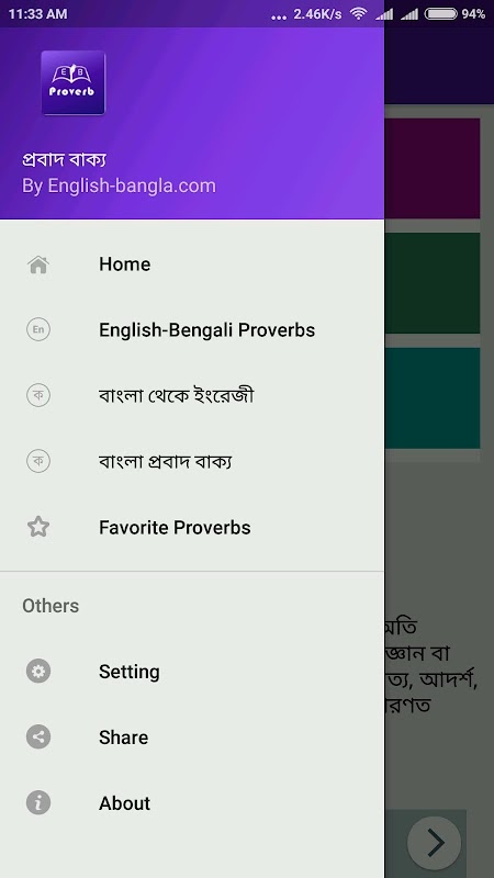 প্রবাদ বাক্য (Bengali & English Proverb) (application hors ligne) est une application officielle de English-bangla.com pour apprendre les proverbes anglais et bengali.