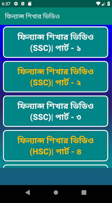 আর আমরা এই অ্যাপটির মধ্যে ইউটিউব থেকে বাছাইকরে ফিন্যান্স শিক্ষার ভিডিও একত্রিত করে অ্যাপটি তৈরী করেছি যাতে করে আপনি সহযেই অ্যাপটি চালূ করে ফিন্যান্স শিক্ষার বিষয়গুলি পেয়ে যান।