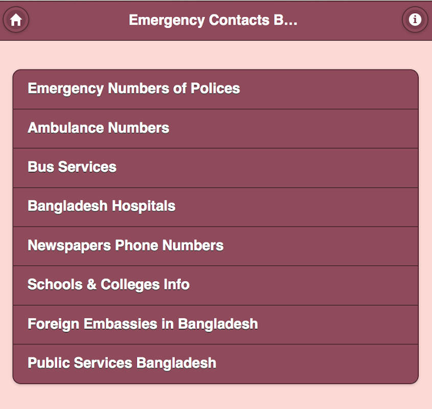 বাংলাদেশের গুরুত্বপূর্ণ ও জরুরী মোবাইল ও ফোন নম্বরসমূহ পেতে এই অ্যাপটি সাথে রাখুন। এখানে যেসব ক্যাটেগরির ফোন নম্বর সমূহ পাচ্ছেন; সেগুলো হচ্ছেঃ