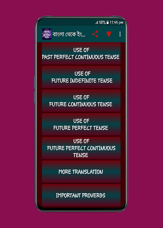 বর্তমান যুগে ইংরেজি একটি অতীব গুরুত্ববহ ভাষা।ইংরেজীতে কথা বলা বা speaking English ইংরেজি লেখা writing English জানা ও শেখার জন্য Grammar বা ব্যাকরণ ও vocabulary বা শব্দার্থ জানা অনেক জরুরি।আর এ কাজ গুলো সহজে করতে English Grammar বা ইংরেজি ব্যাকরণ এর নিয়ম গুলো আয়ত্ব করতে হবে।কিন্তু অনেকেরই পক্ষে এ কাজটি করতে অনেক দূরহ হয়।এ কাজটি সহজ করার জন্য আমরা Grammar এর উপর ভিত্তি করে বাংলা বাক্যকে ইংরেজিতে সহজে Translation বা অনুবাদ করার কিছু নিয়ম নিয়ে এসেছি।এতে করে যে কোন বাংলা বাক্য বা কথা কে সহজে ইংরেজিতে অনুবাদ করতে পারবেন।আর আমরা সেই সব বাক্য নিয়ে এসেছি যা আমরা দৈনন্দিন জীবনে বহুল ব্যবহৃত sentence বা বাক্য।English Grammar এর প্রধান Tense অনুযায়ী বাক্য গুলো আনা হয়েছে...