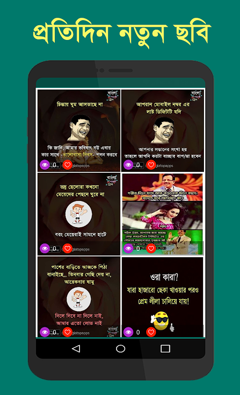 বাংলাদেশে এই প্রথম প্রতিদিত নতুন নতুন সেরা বাংলা স্ট্যাটাস এবং কমেন্টস এর ছবি নিয়ে এই বাংলা শায়েরী ট্রোল (Bangla Shayari Troll) এপসটি। এই এপস থেকে আতি সহজে যে কাউকো ছবি পাঠাতে পরবেন, ওয়ালপেপার সেট করতে পারবেন, পছন্দ করে রাখতে পরবেন এবং আপনার ফোনে সেভ করে রাখতে পারবেন এই শায়েরী ট্রোল (Bangla Shayari Troll) এপসটি থেকে।