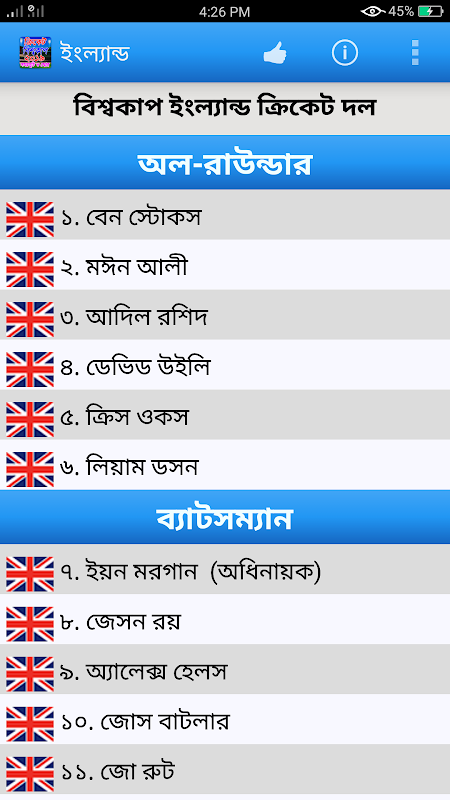 => ক্রিকেট বিশ্বকাপ ২০১৯ অ্যাপ