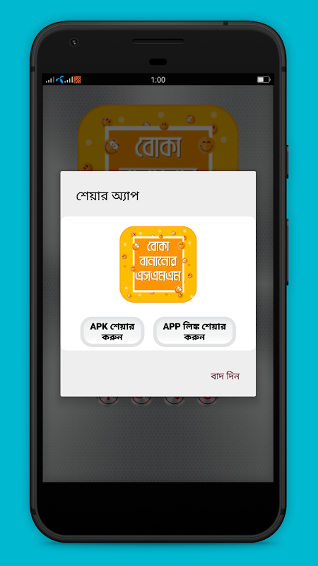 বোকা বানানোর এসএমএস অ্যাপটি খুবই হাস্যরসাত্বক একটি অ্যাপ. আপনি আপনার বন্ধু বান্ধবদের সাথে থাকুন সব সময় হাসি ঠাট্ট্রার মধ্যে. নানান ধরনের মজাদারসব এসএমএস দিয়ে সাজানো হয়েছে আমাদের boka bananor sms অ্যাপটি. বিভিন্ন ছলা কলায় পরিপূর্ণ এই অ্যাপটি খুবই উপভোগ্য. একা একা বসে কেন বোর হবেন, তার চেয়ে ভালো কোন বন্ধুর সাথে দুষ্টুমিতে মেতে উঠুন. অফলাইন এ এটি ইউজ করা যায় তাই একবার ইন্সটল করে পছন্দের কোন এসএমএস কপি করে পাঠিয়ে দিন আপনার বন্ধুর নম্বরে আর এনজয় করুন দারুন সব মূহুর্ত.