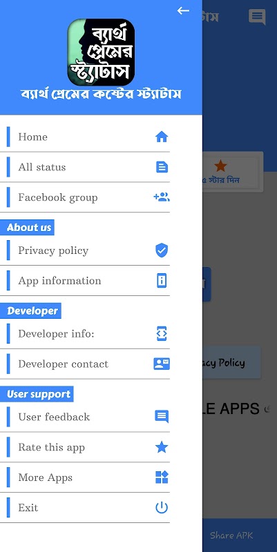 আমাদের এই কষ্টের এস এম এস অ্যাপটি আশাকরি আপনাদের ভালো লাগবে, আর তাই কস্টের স্ট্যাটাস বন্ধুদের মাঝে শেয়ার করর পাশাপাশি আমাদের এই বিরহের এস এম এস অ্যাপটিও শেয়ার করুন এবং ৫ স্টার দিন।