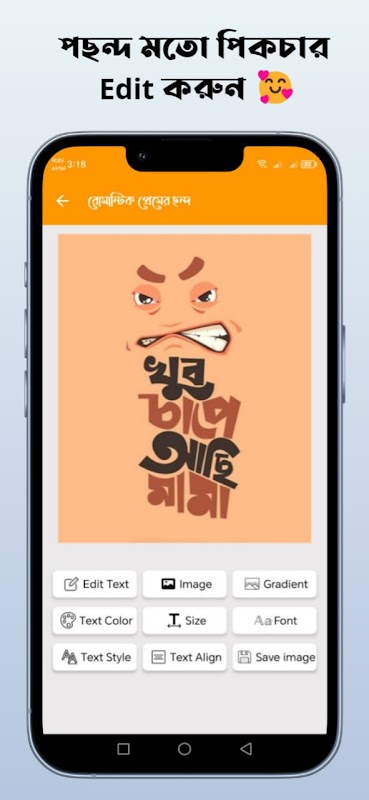 আপনার পছন্দমত ছবি ডিজাইন করতে পারবেন। এডিট বাটনে ক্লিক করলে যে বিষয়গুলো পাবেন, Police, Style de texte, Alignement du texte, Enregistrer l'image.