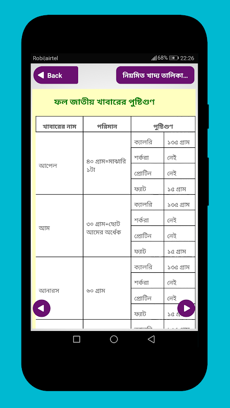 Guide des vitamines et des calories en Bangla Guide des vitamines et des calories