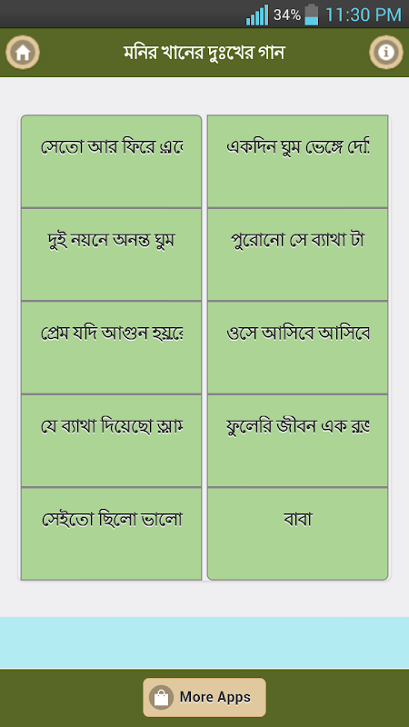 এই এপস এ আরও যা যা পাবেনঃ মনির খানের জনপ্রিয় বাংলা গান, হিটস সেরা গান এম খানের, মনির খানের বাছাই করা গান, কষ্টের ভরা বাংলা গান, বাংলা বিরহের সেরা গান।