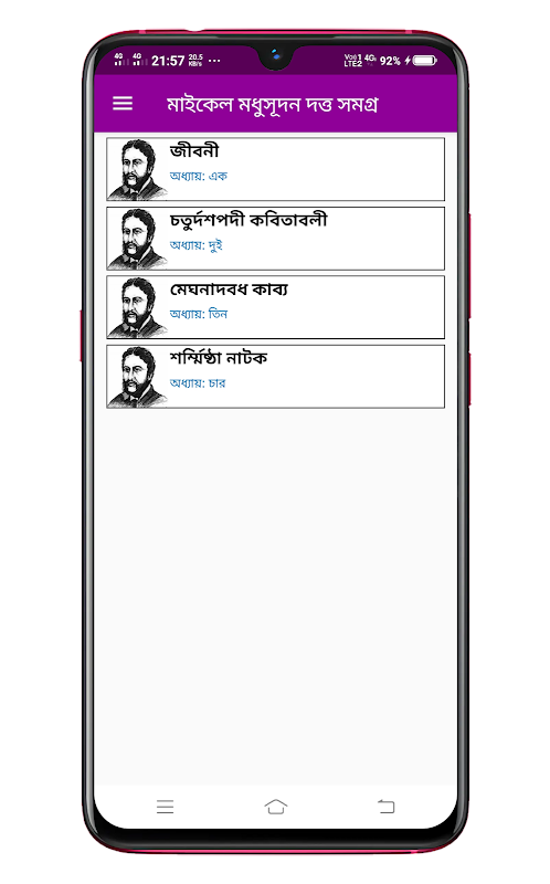 মাইকেল মধুসূদন দত্ত সমগ্র - অ্যাপটিতে নিম্নলিখিত বিষয়গুলি রয়েছে।