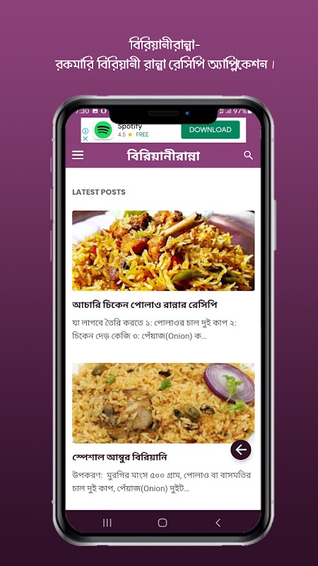 Il n'y a aucune comparaison entre le biryani dans l'hospitalité des invités domestiques ou dans l'hospitalité d'une occasion spéciale. Traditionnellement, les gens de notre pays aiment le biryani. Le principal élément de l'arrangement alimentaire spécial est toujours le biryani Ainsi, vous connaîtrez diverses recettes de cuisine de biryani à partir de cette application. L'application "Biryaniranna" - notre édition spéciale où nous avons rassemblé une sélection des meilleures recettes à partir desquelles vous pouvez apprendre à cuisiner. Apprenez à faire du biryani maison en quelques minutes. La meilleure recette de biryani hors ligne qui vous aidera à utiliser l'application hors ligne si vous en avez besoin. Vous trouverez plus de 200 recettes de biryani faciles à partir de notre application de recettes de biryani.