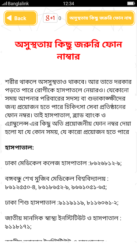 L'application fournit les connaissances générales sur le groupe sanguin en langue bengali pour les Bangladais.