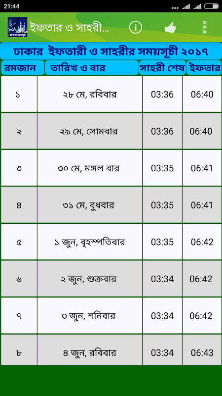Vieilles versions de রমজান ২০১৭ সময়সূচী